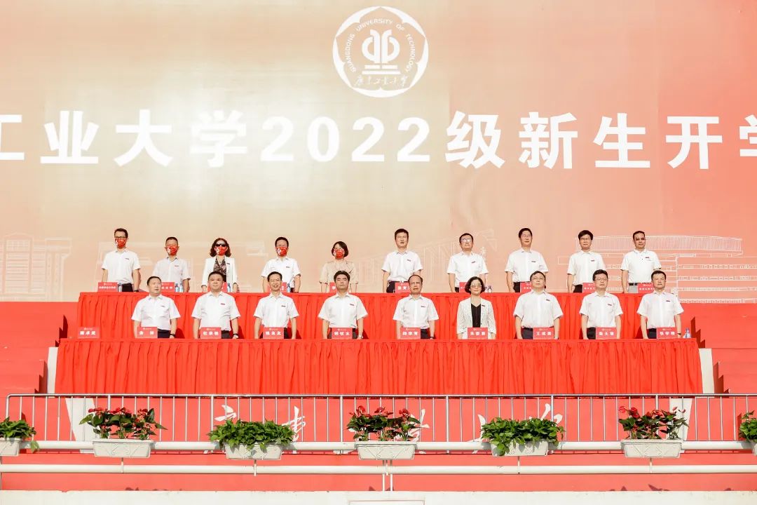 开学典礼上,还举行了以“爱校荣校”为主题的佩戴学校徽章仪式。校领导为10名新生代表授予学校徽章,台下新生全体起立,集体佩戴学校徽章。这枚小小的校徽承载着广工人的光荣与使命,从这一刻起,2022级学子们与广工血脉相连,风雨同舟,携手共进。