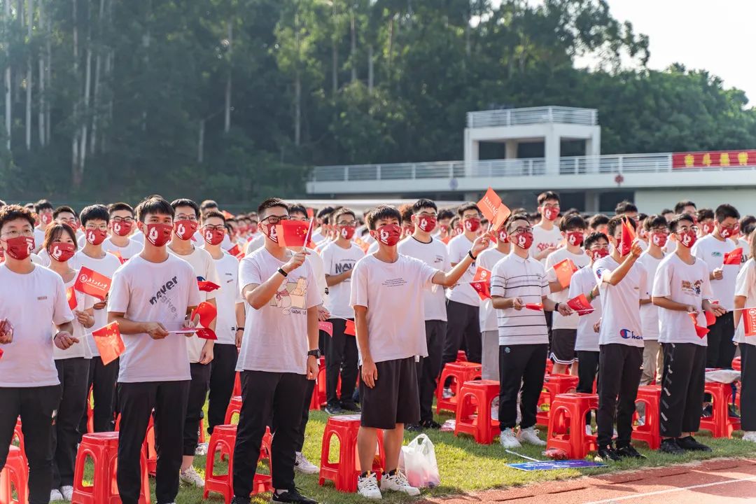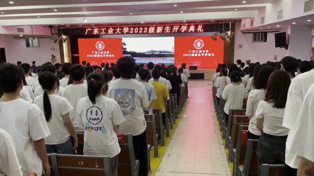 “风起岭之南,潮涌珠江畔,逐梦号角响,使命肩上扛……”,典礼最后,全场广工人共同唱起校歌《逐梦》,用嘹亮的声音叩响青春的大门。