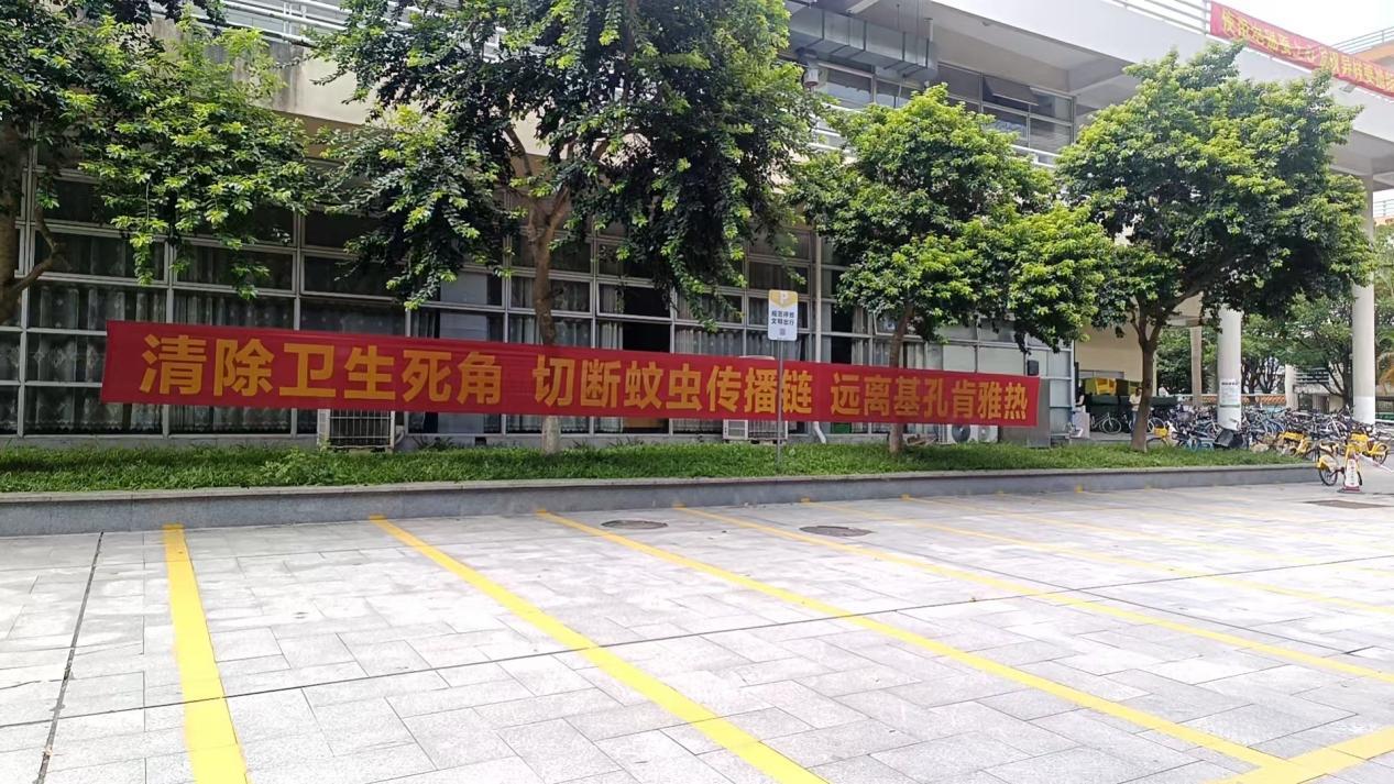 加强校园环境卫生综合整治,以爱国卫生运动为抓手,对校园垃圾堆放点、卫生死角等进行全面清理,实行生活垃圾、绿化垃圾日产日清,督促工地建筑垃圾及时清运,加大校园绿化通透力度,铲除蚊媒孳生地。