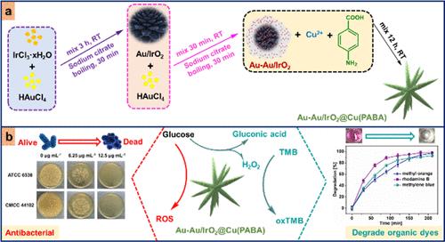 近日,生物医药学院赵肃清教授课题组在美国化学学会旗下著名期刊ACS Applied Materials & Interfaces(IF=8.758,Ⅰ区Top期刊)上发表了题为“Au-Au/IrO2@Cu(PABA) Reactor with Tandem Enzyme-Mimicking Catalytic Activity for Organic Dyes Degradation and Antibacterial Application”的论文(DOI: 10.1021/acsami.1c00126)。
