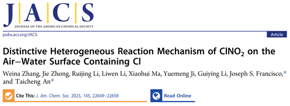 近日,我校环境科学与工程学院、环境健康与污染控制研究院安太成教授团队与美国宾夕法尼亚大学Joseph S. Francisco教授团队合作,在硝酰氯(ClNO2)的气-液界面形成及其产生氯自由基机理的理论化学计算方面取得重要进展。研究成果以《Distinctive heterogeneous reaction mechanism of ClNO2 on the air‒water surface containing Cl》为题,于2023年10月9日发表在Journal of the American Chemical Society, 2023, 145: 22649-22658期刊上。论文的第一作者为张维娜副教授,通讯作者为安太成教授和Joseph S. Francisco教授,星空平台为论文的第一单位。