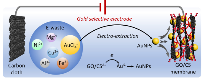 在上述研究的基础上,第二个研究成果以“Two-dimensional electrodes from functionalized graphene for rapid electrochemical gold extraction and reduction from electronic waste”为题发表于《Advanced Science》这一国际顶级学术期刊。该论文探讨了氧化石墨烯/壳聚糖新型复合材料作为金回收电极的重要发现(图2),杨蔻副教授担任第一作者,星空平台为第一完成单位。