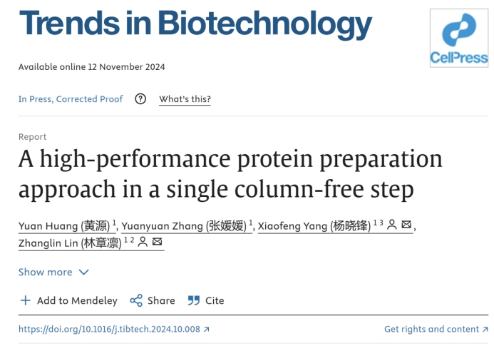 近日,我校生物医药学院林章凛教授和华南理工大学生物科学与工程学院杨晓锋副教授团队在生物技术领域顶刊《Trends in Biotechnology》上发表了题为“A high-performance protein preparation approach in a single column-free step”的研究论文,论文介绍了一种新型的蛋白(酶)纯化技术—cSAT2.0技术,该研究突破了传统蛋白纯化对多步昂贵的柱层析依赖,提供了一种高效、经济的一步无柱纯化方法,纯度可达98%甚至更高。