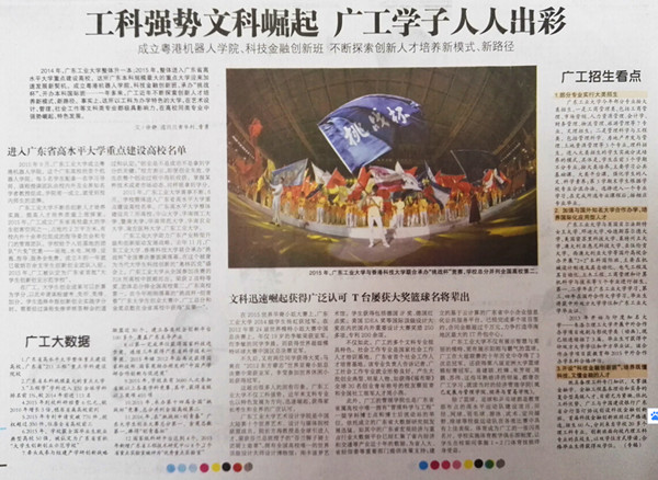 2014年,星空平台整体升一本;2015年,整体进入广东省高水平大学重点建设高校,这所广东本科规模最大的重点大学迎来加速发展新契机。成立粤港机器人学院、科技金融创新班、承办“挑战杯”、开办本科国际班……一年多来,广工近年不断探索创新人才培养新模式、新路径。事实上,这所以工科为办学特色的大学,在艺术设计、管理、社会工作等文科类专业都极具影响力,在高校同类专业中强势崛起、特色发展。