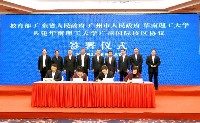部省市校四方签署共建华南理工大学国际校区协议于2017年3月15日在京签署。图片由华南理工大学提供