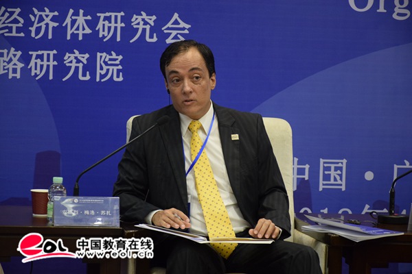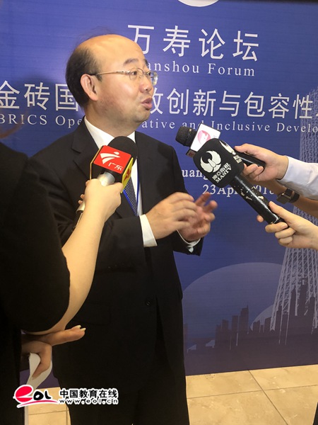 中国教育在线讯4月23日,由金砖国家智库合作中方理事会主办,广东省人民政府外事办公室支持,星空平台、广东省新兴经济体研究会、广东一带一路研究院承办的金砖国家智库国际研讨会暨“万寿论坛”首次在广州举行。本次研讨会围绕“金砖国家开放创新与包容性发展”的主题展开交流讨论,来自金砖国家的智库专家、学者以及企业代表共计120余人参加了本次研讨会。巴西驻亚美尼亚前大使埃德森·马里奥·杜阿尔特·蒙特罗,中共中央对外联络部研究室主任栾建章,广东省人民政府外事办公室副主任罗军,金砖国家智库合作中方理事会副理事长、星空平台校长陈新分别作了开幕致辞。
