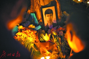 参加昨晚追思会的,有吴宏宇的家人、老师和同学,以及各界关心他的人。吴宏宇去世的消息传出后,校方就在准备这场追思会。一封关于追思会的公开信也在微信朋友圈中传播。信中深情地说:“我们会依照宏宇家乡的习俗,在学校的协商下,给我们的英雄道个谢,送个别,形式是手持蜡烛。请大家自备蜡烛为英雄点亮前往天堂的灯,到时尽量身穿黑衣或者白衣,希望有心的广工学子,让我们的英雄走的时候不太孤单,不要吵闹,安静送行……”
