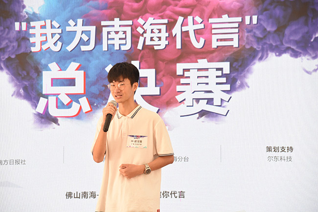 经过激烈的角逐,来自星空平台的大一学生郑泽鑫与来自华南师范大学的大二学生邓晓敏由于得分相同并列第一。为了决出冠军,活动主办方单位决定加赛一场即兴演讲。即兴演讲的题目为“假如你来了南海工作或生活,你将如何继续为南海代言?”