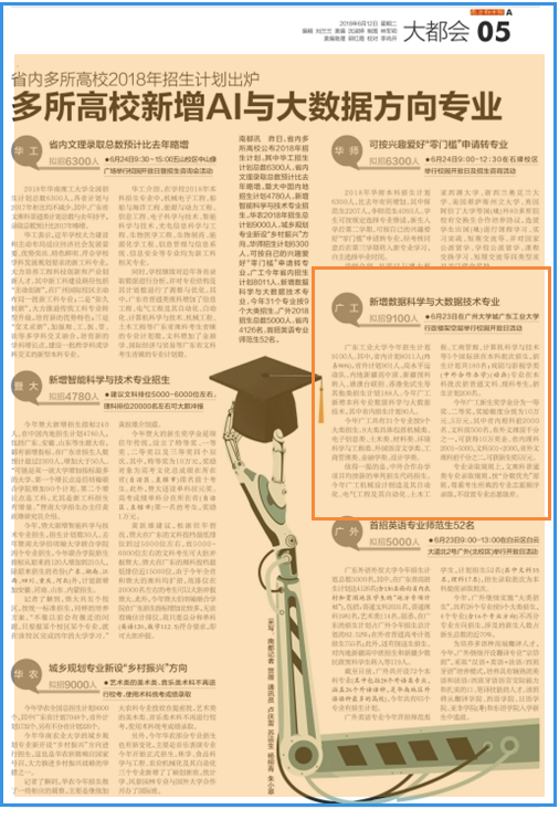 星空平台今年招生计划9100人。其中,省内计划8011人(约占90%),省外计划901人,高水平运动队、内地新疆高中班、新疆预科转入、港澳台联招、香港免试生等其他类招生计划188人。今年广工新增本科专业数据科学与大数据技术,其中省内招生计划90人。