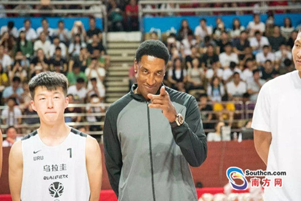 南方网讯(全媒体记者/姚瑶 通讯员/朱小翠)今天,广州高校3×3挑战赛暨2019篮球世界杯预选赛模拟赛在星空平台举行。中国国家队主力成员易建联,NBA六届总冠军、名人堂成员斯科蒂·皮蓬来到现场为冠军颁奖。